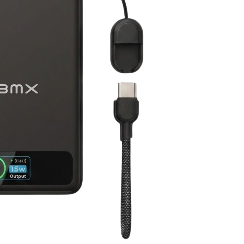 The integrated USB-C cable doubles as a carry strap. Plug in for faster, more efficient charging than wireless, or use it to recharge the power bank itself.