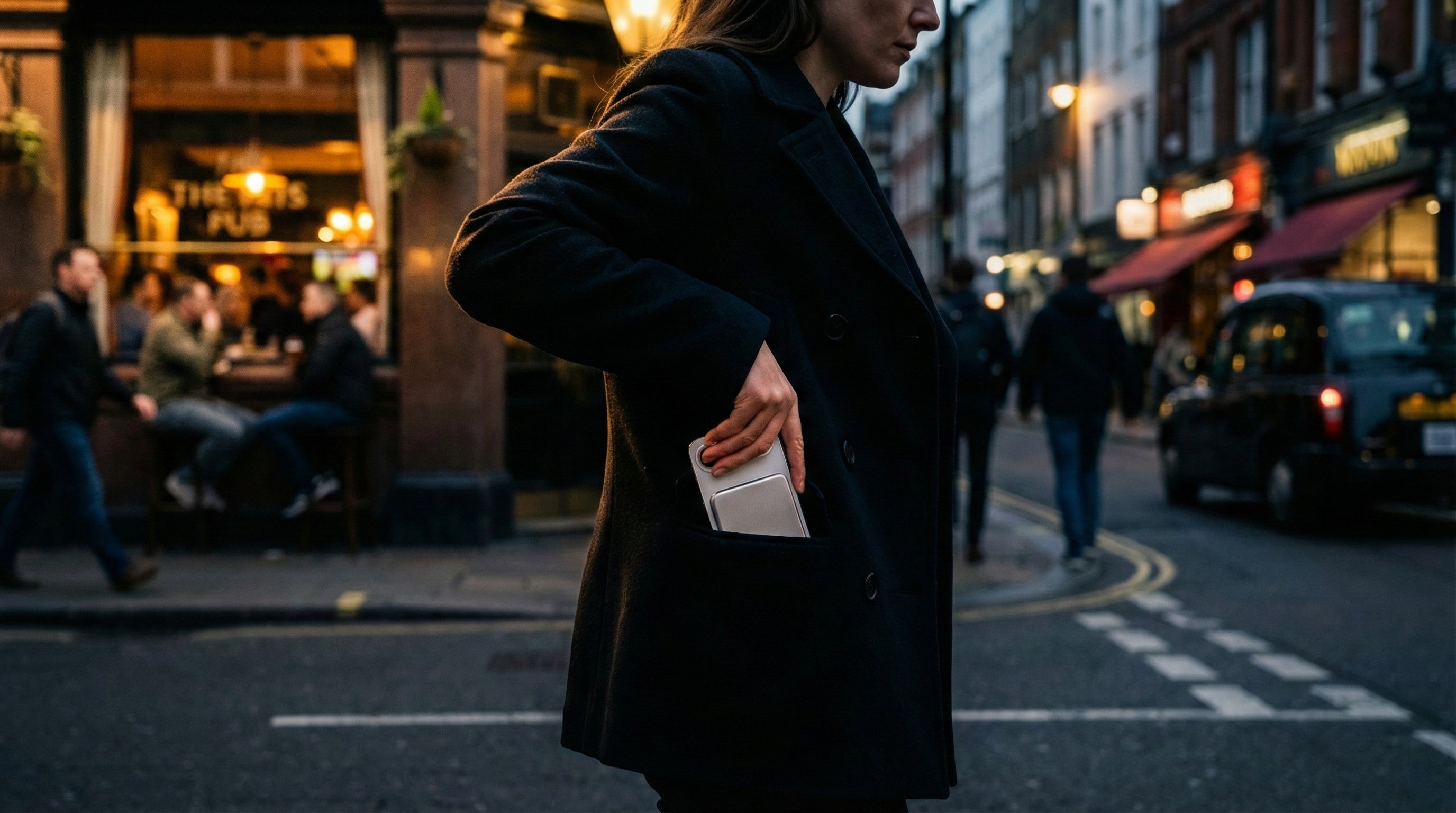 Just 6.8mm at its thinnest edge. Disappears in your pocket